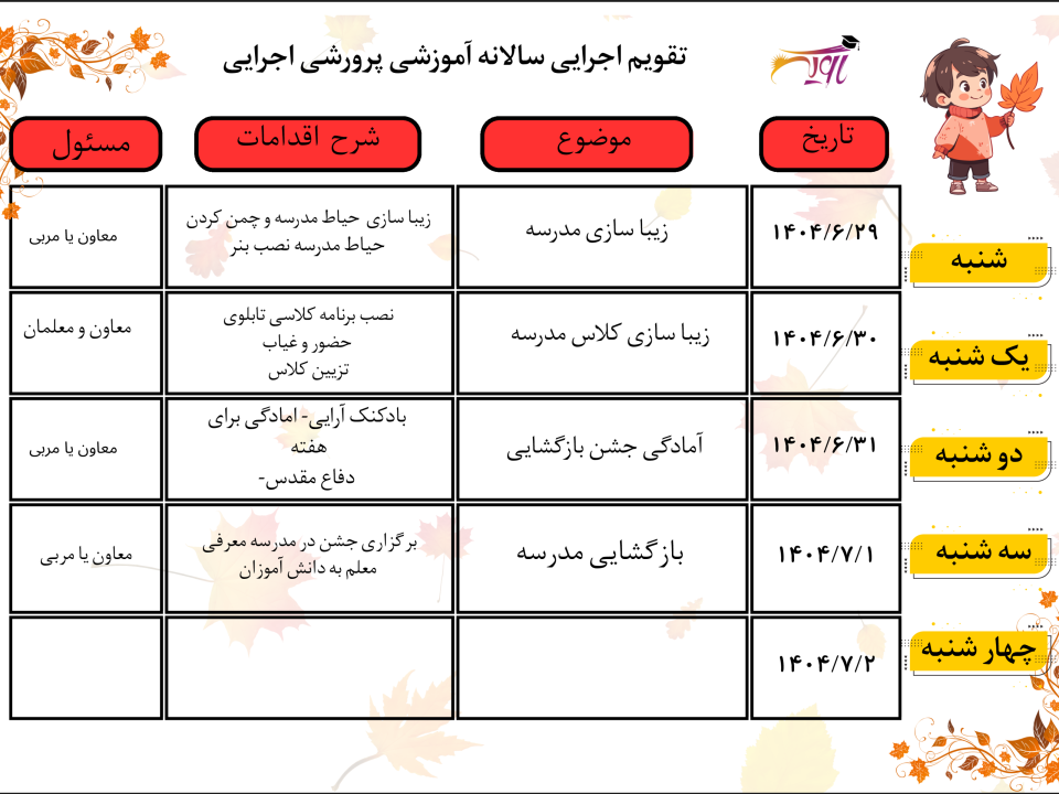 اکتبر 7, 2025 اکتبر 7, 2025برنامه کلاسی پایه اول ۱۴۰۴برنامه نقشه کلاسی شما با موفقیت نوشته شد قهرمان کوچک کلاس با دقت کتاب هایت را در کیفت بگذار .
